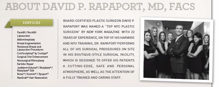 Dr. Rapaport was featured in the Spring 2015 New Beauty Issue. He discusses his services which include liposuction and breast augmentation. He also discusses his practice philosophy, training and new treatments he is excited about.